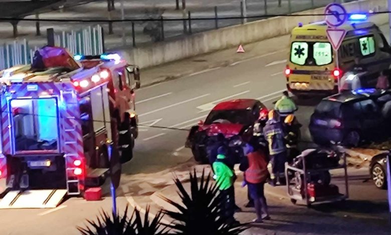 Um embate entre duas viaturas, esta noite de domingo, deixou duas pessoas feridas, uma das quais com gravidade.