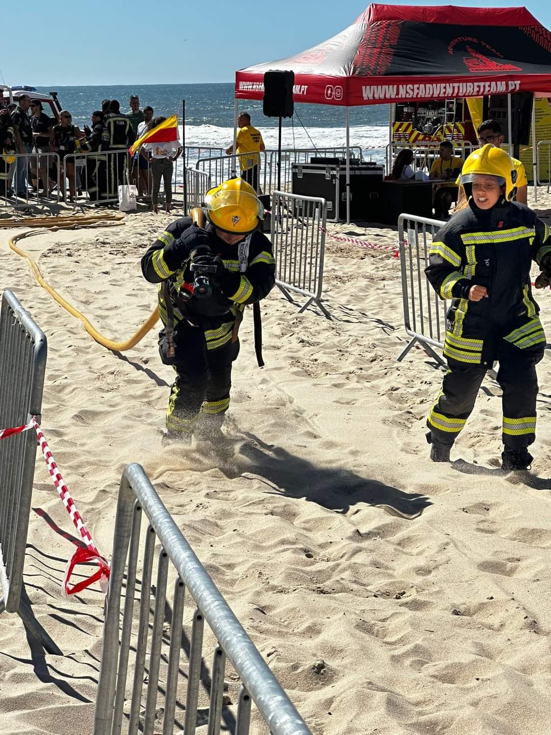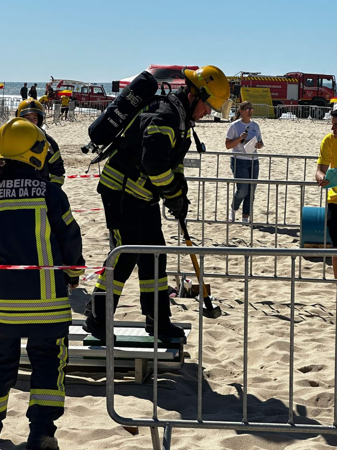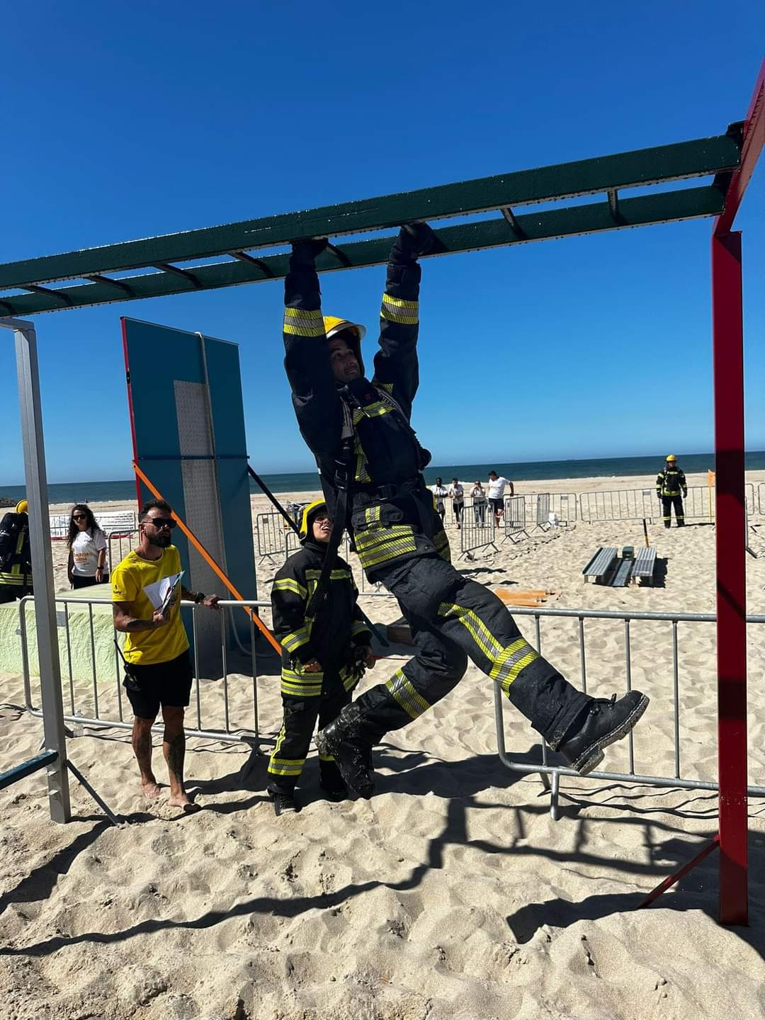 Decorreu no passado sábado, na praia de Esmoriz, uma prova muito exigente fisicamente e técnica. Foram quatro etapas, corrida com mangueira e abertura de porta, escada horizontal e percurso de obstáculos, mofil e poliçada, túnel e boneco.