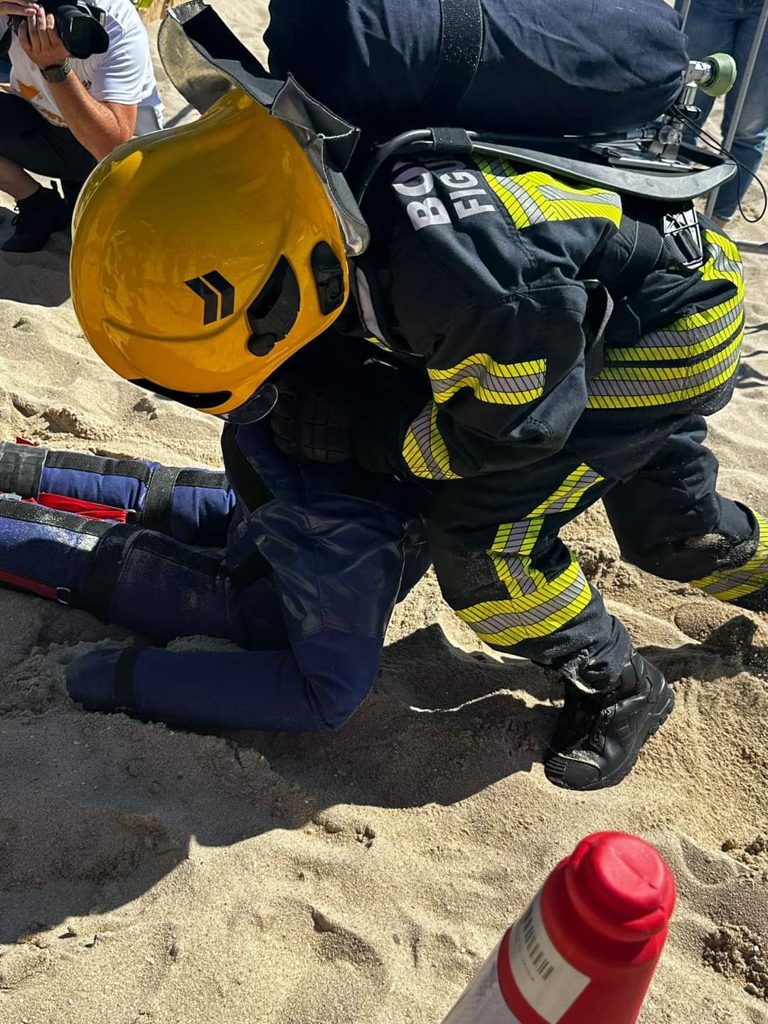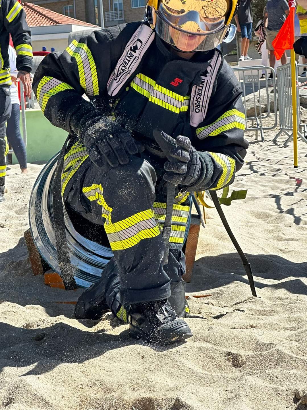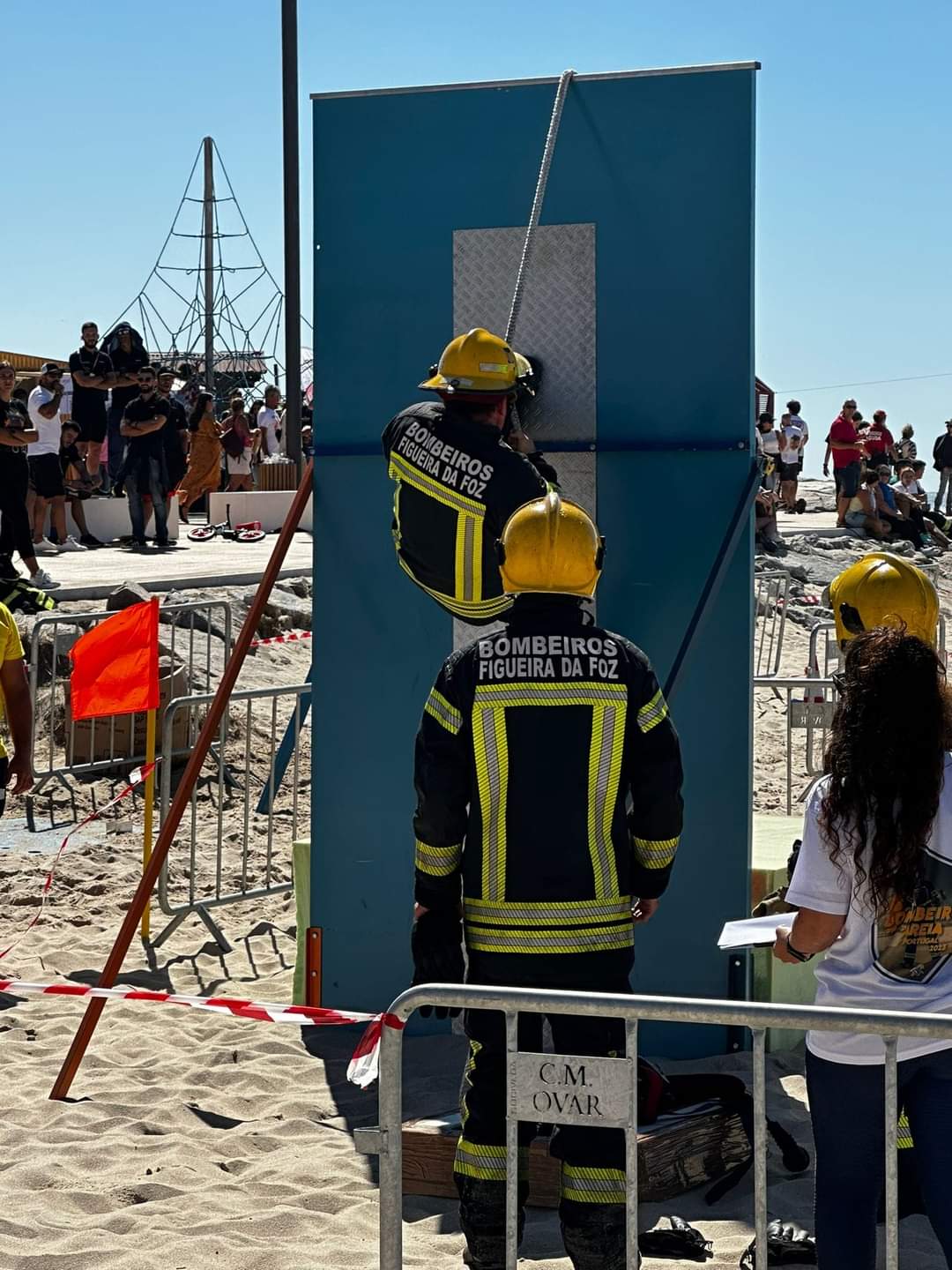 Decorreu no passado sábado, na praia de Esmoriz, uma prova muito exigente fisicamente e técnica. Foram quatro etapas, corrida com mangueira e abertura de porta, escada horizontal e percurso de obstáculos, mofil e poliçada, túnel e boneco.
